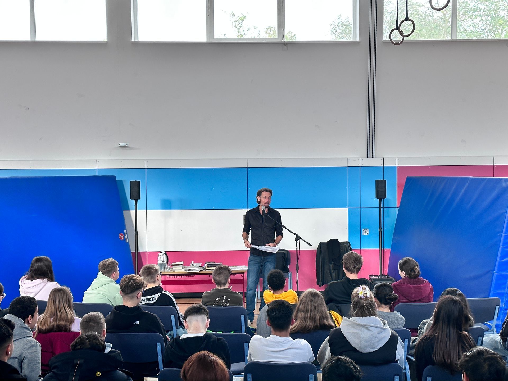 Die Schülerinnen und Schüler zeigten sich begeistert von der humorvollen und interaktiven Herangehensweise des Autors.