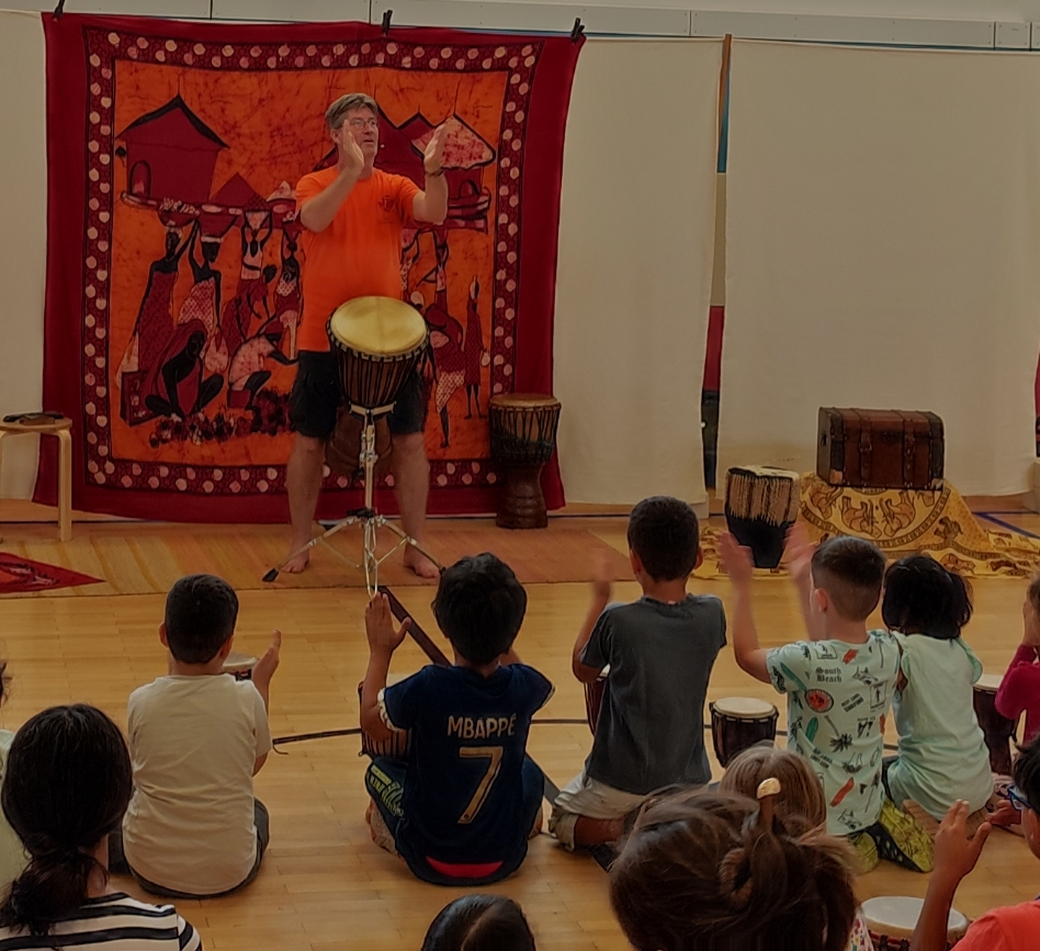 Jede Veranstaltung begann mit einem rhythmischen Einstieg: Gemeinsam mit den Kindern trommelte Ibo auf dem eigenen Körper und brachte so alle in Bewegung. Danach erzählte er humorvoll von seiner Herkunft. Mit einem charmanten Mix aus Witz und kulturellen Einblicken sorgte er für viele Lacher und staunende Gesichter.